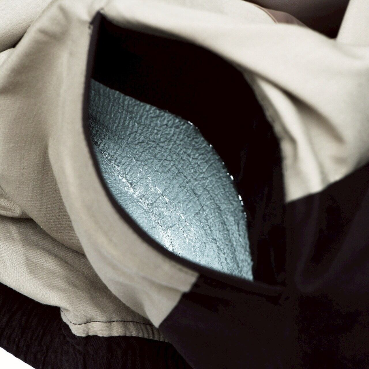 生地は100%コットン。胸ポケットには保冷機能を持つアルミフィルムを採用し、外飲み時にも活躍する仕様。