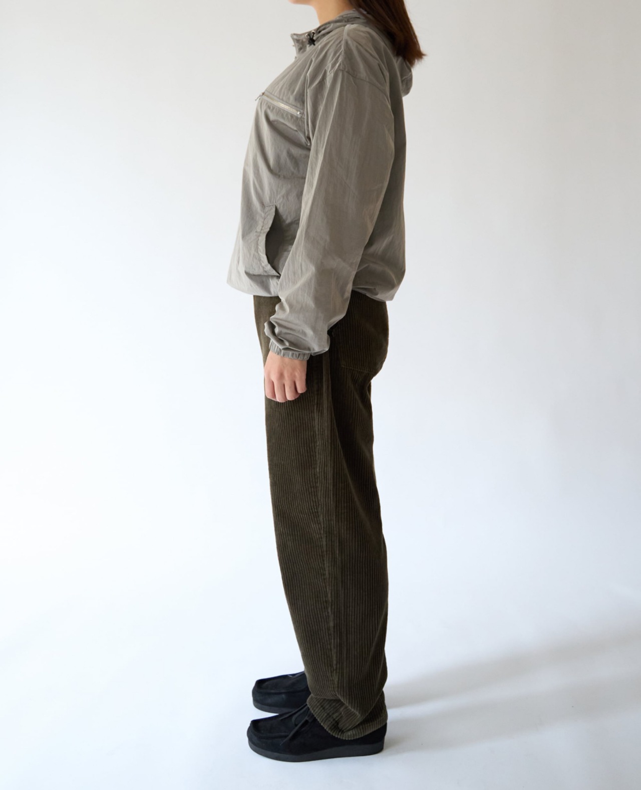 太畝のコーデュロイ生地を使用したバギーパンツ。