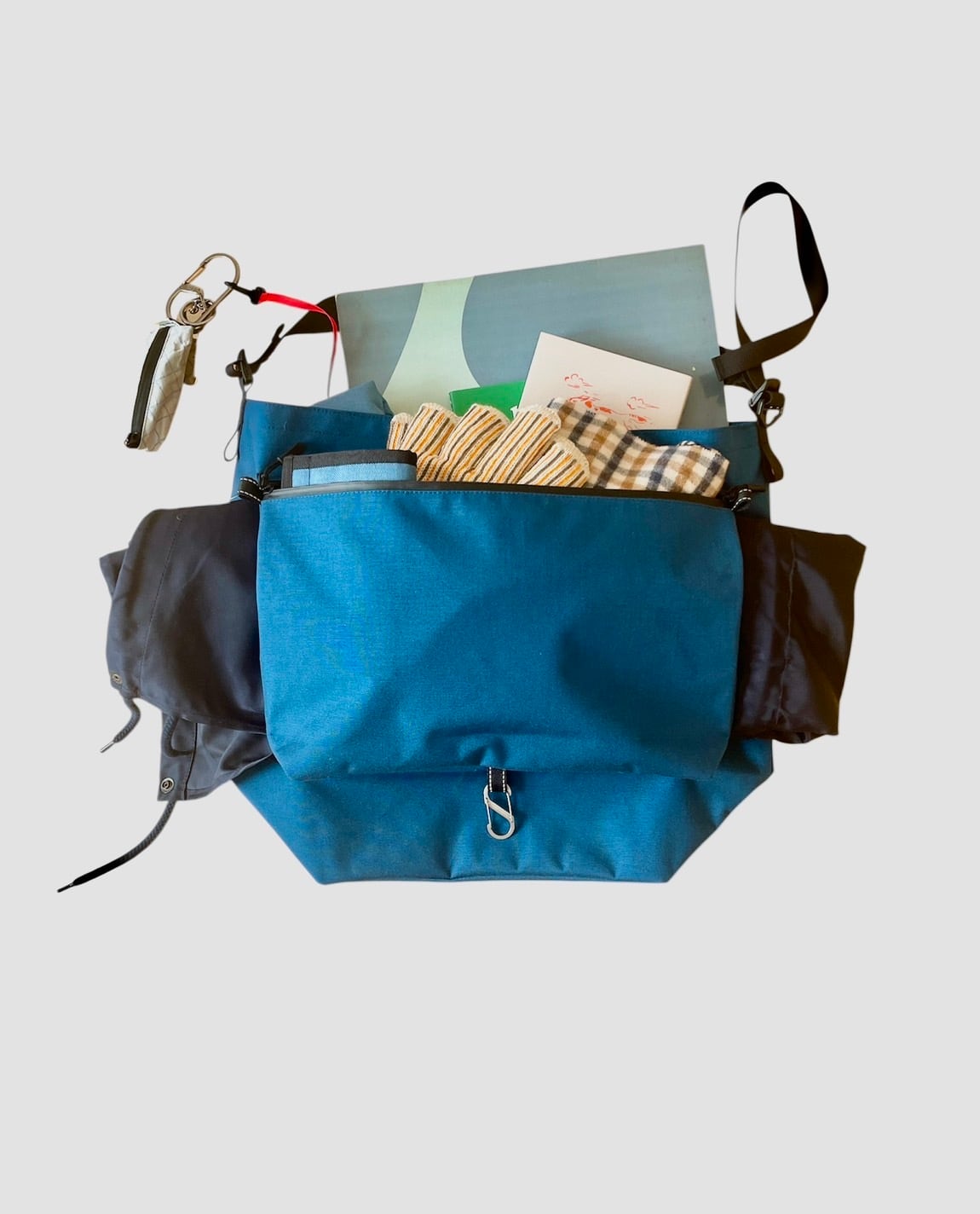 今回はコーデュラ500dを使い、フロントポケットの中に2フロアのフラットポケットが付けました。