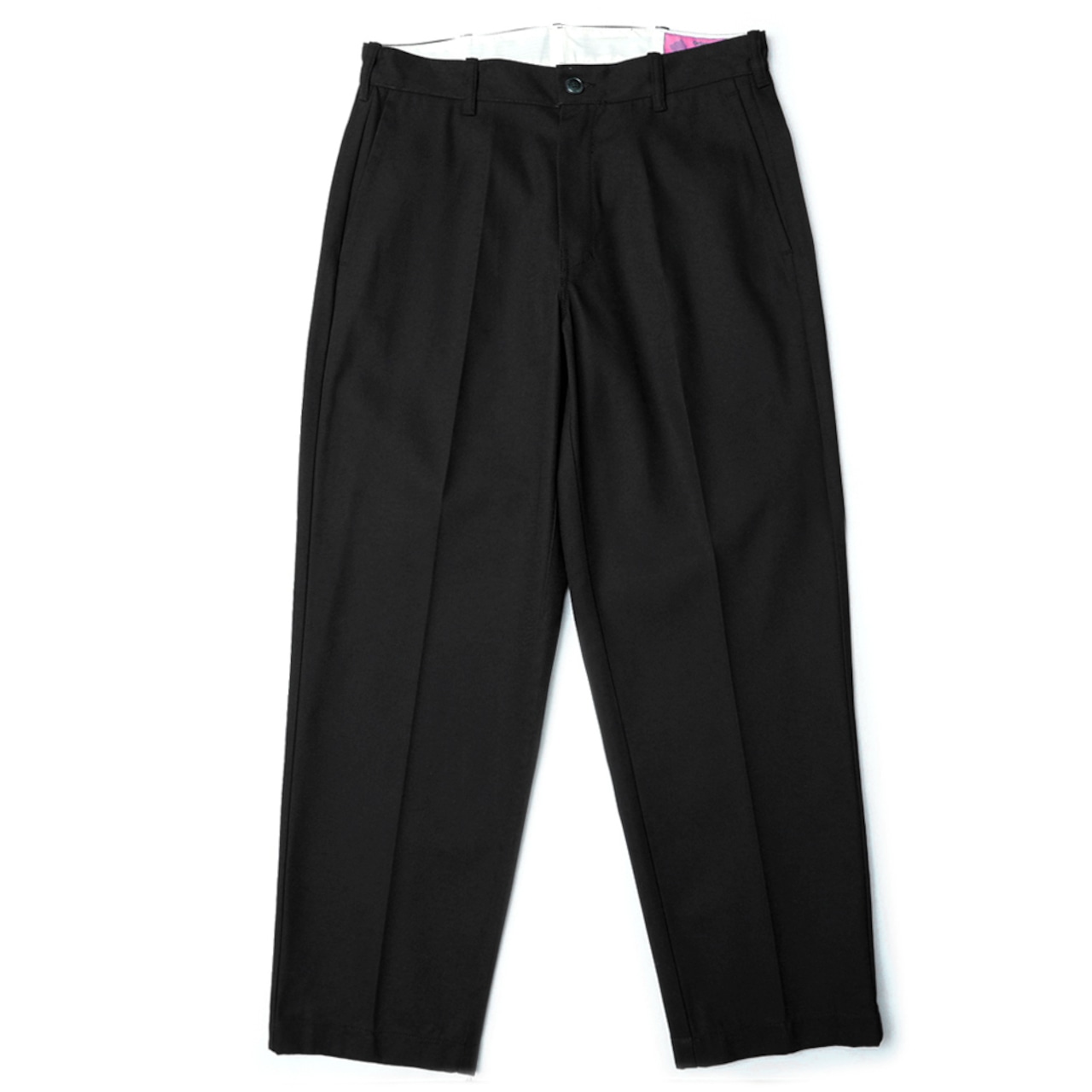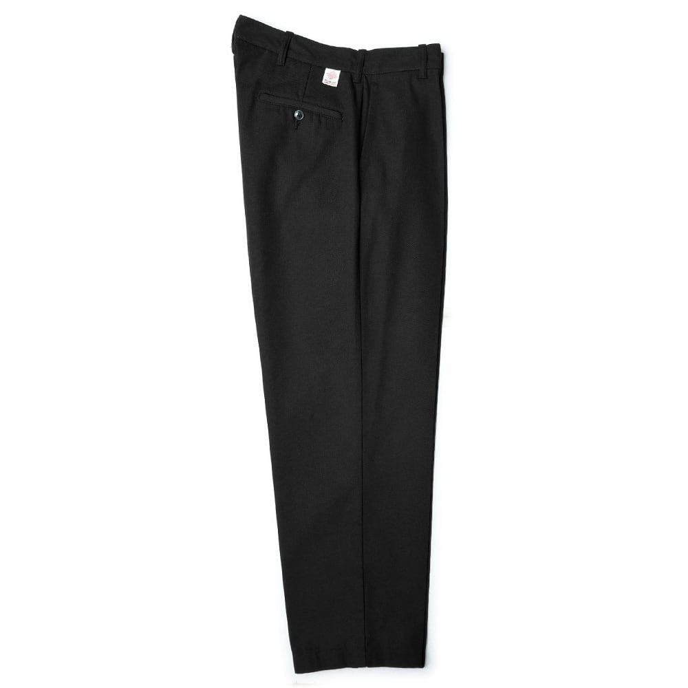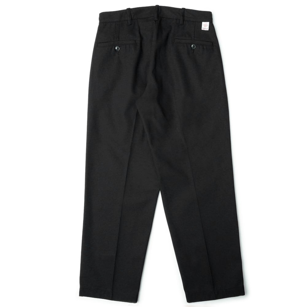 緩やかなテーパードを効かせ、脚の上げ下げといった動きやすさを考慮し、股上はやや浅めに設計。程よい太さにセンタープレスをかけることで、よりスッキリとしたシルエットが特徴の