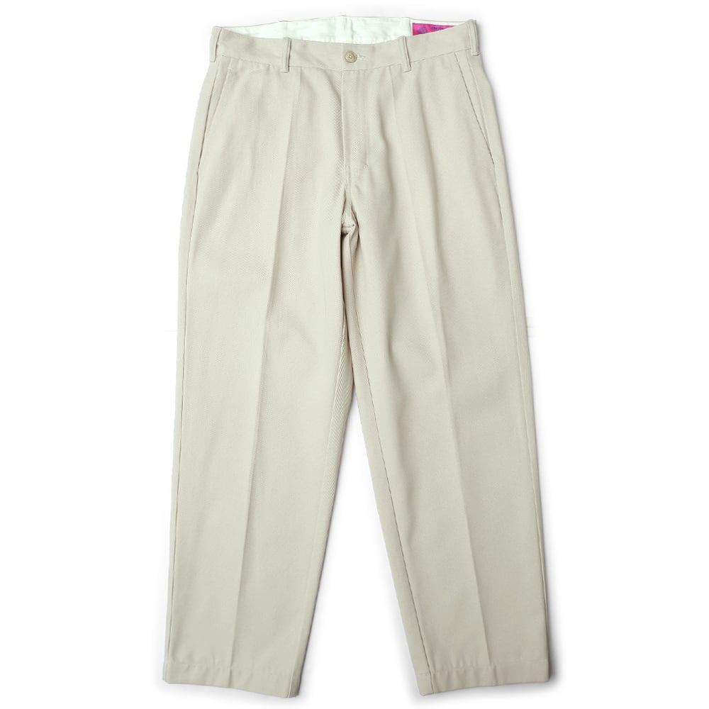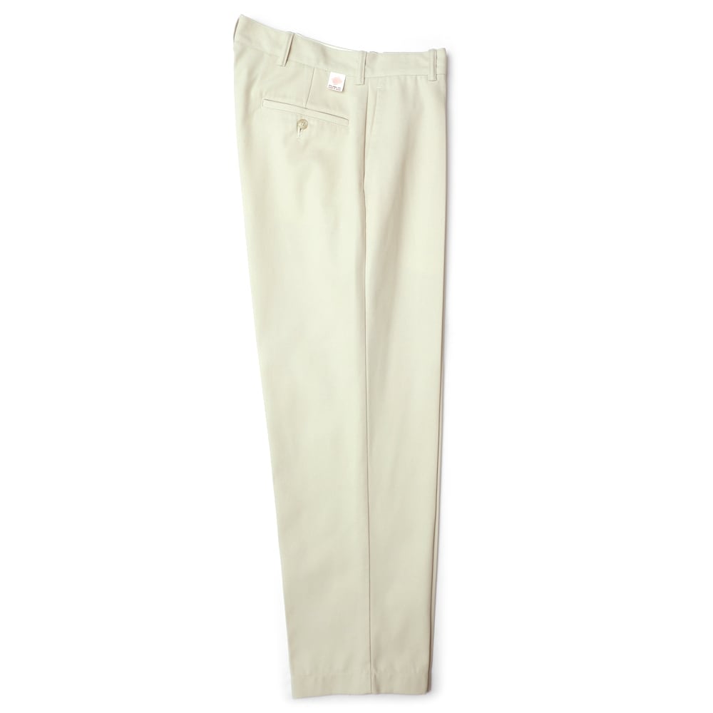 緩やかなテーパードを効かせ、脚の上げ下げといった動きやすさを考慮し、股上はやや浅めに設計。程よい太さにセンタープレスをかけることで、よりスッキリとしたシルエットが特徴の