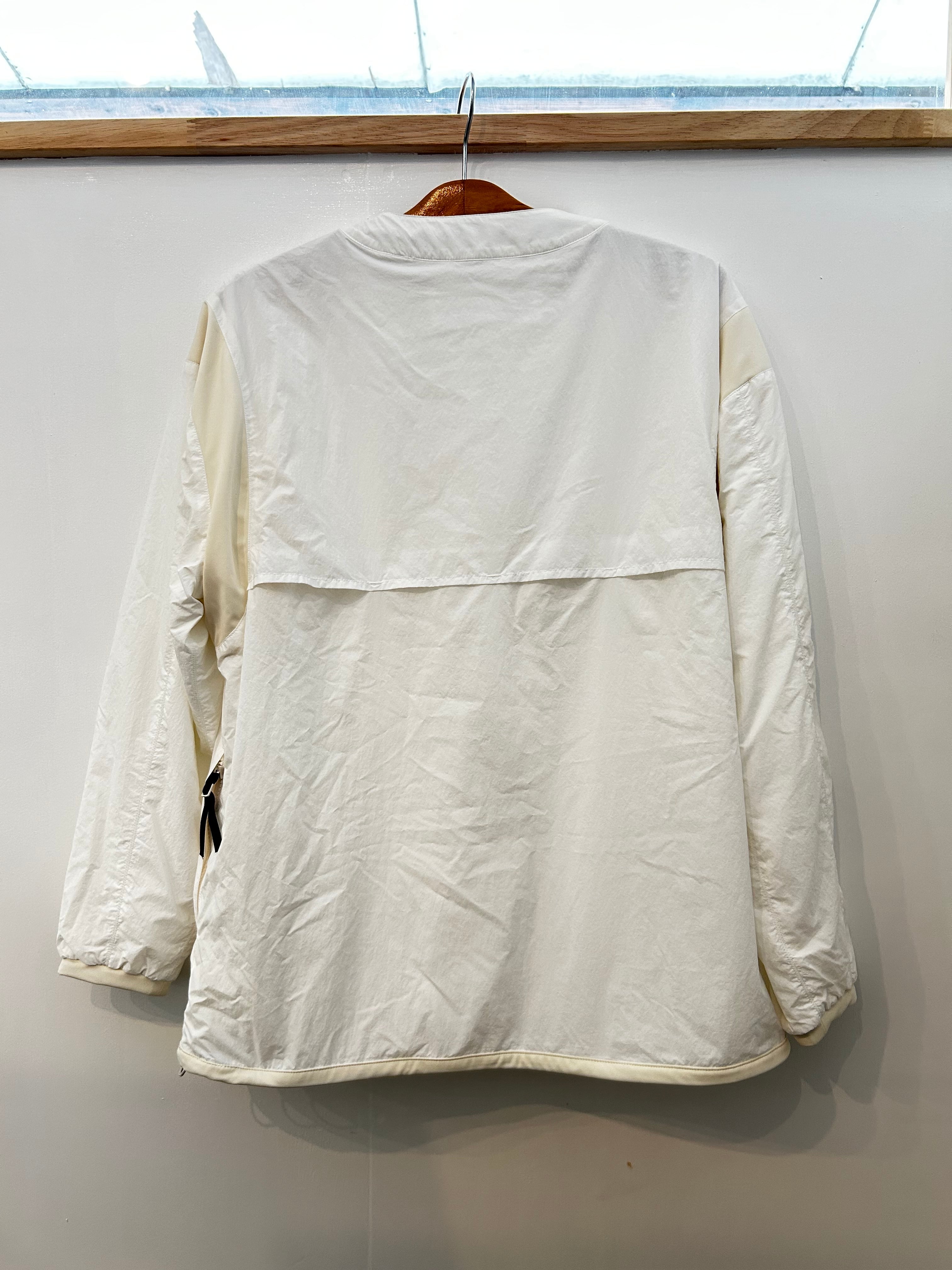 ウォームアップジャージをサンプリングしたマットなナイロン100%生地を使用したスナッププルオーバーになります。
