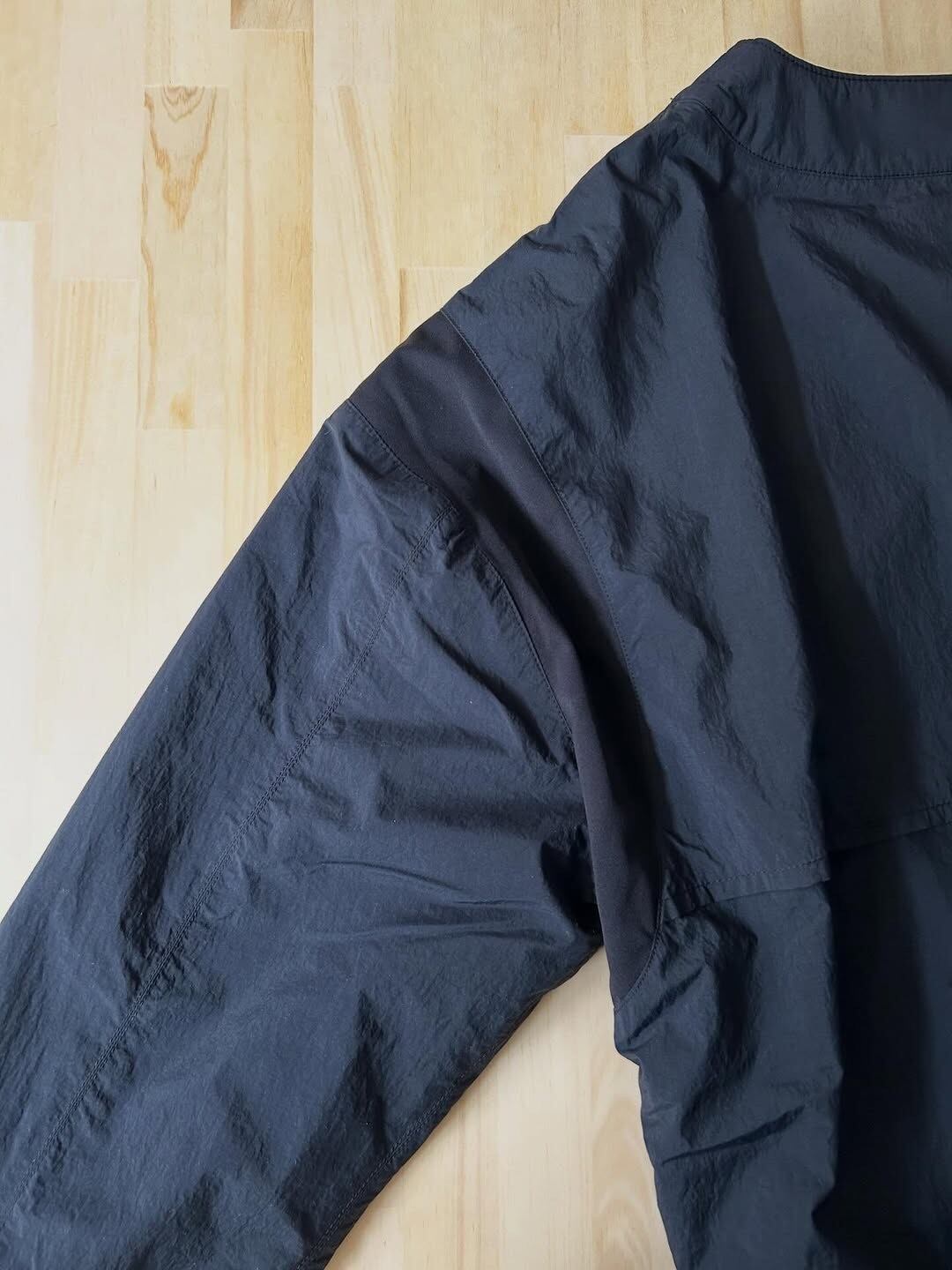アームホール、袖丈を少しシャープにし、袖も少し短め、着丈は絞れるようにドローコードが付いてます。