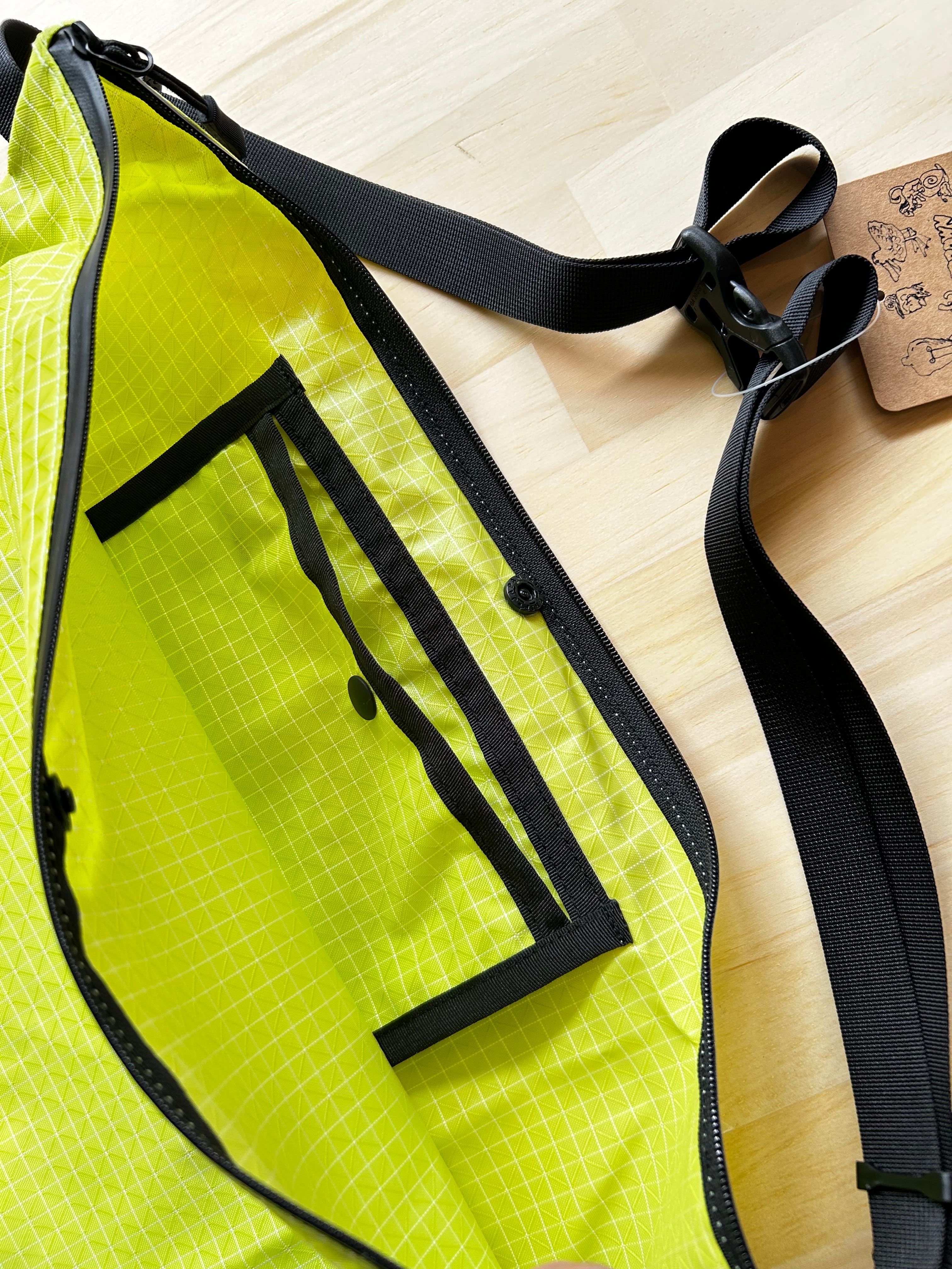 インナーポケットが1つ付き、自転車やスケートボードでズレてしまうのを防ぐストラップは両先端はクリップしてあるだけなので、外すこともできます。