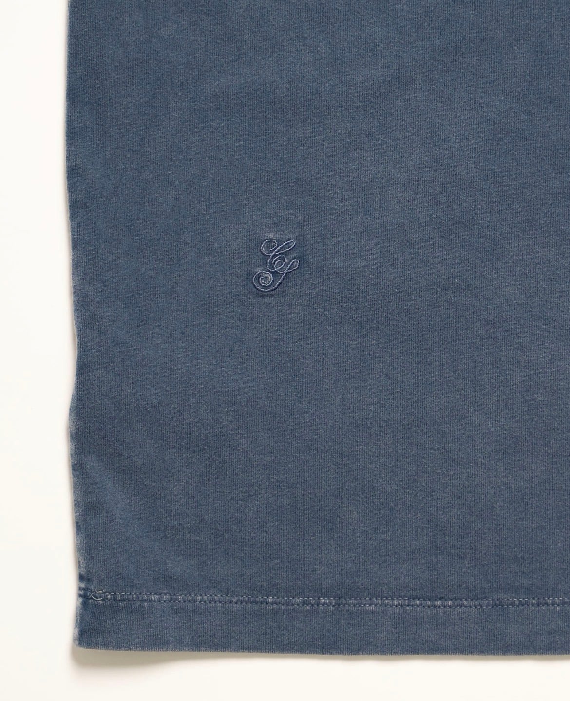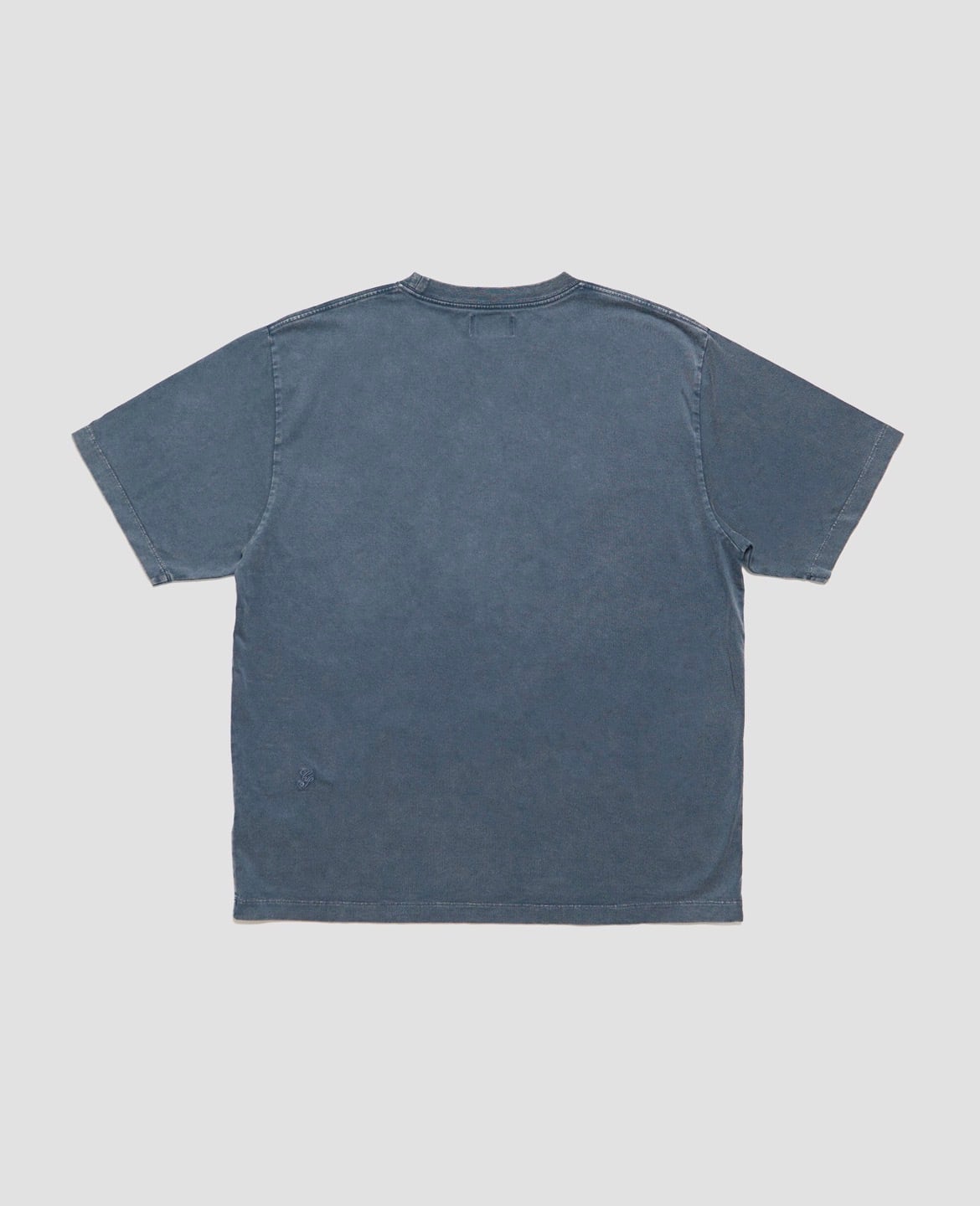 一度製品染めを施した後、水量と薬剤の使用を抑えた洗い工程を重ねることで、奥行きのある色味と自然なムラ感を引き出したTシャツ。